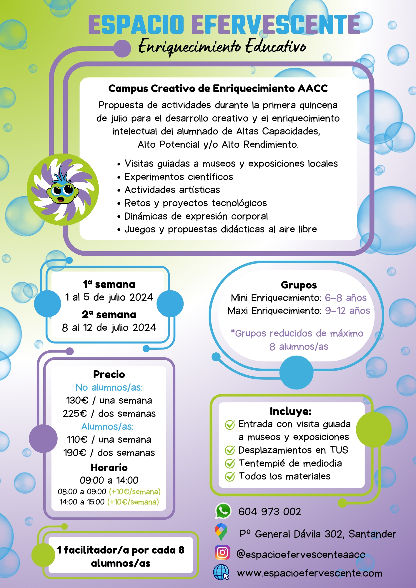 Espacio Efervescente ofrece un Campus Creativo de Enriquecimiento para Altas Capacidades durante la primera quincena de julio