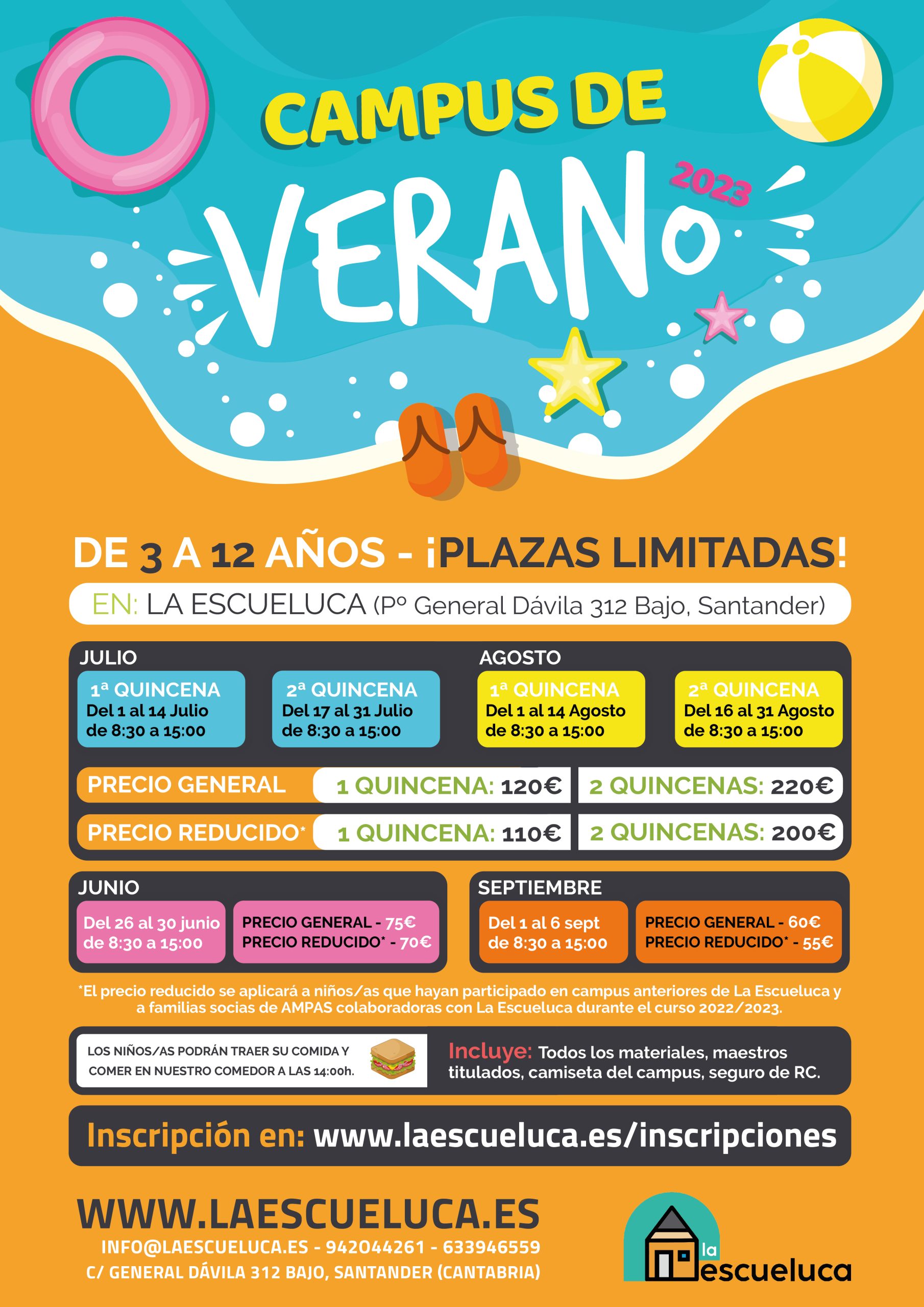 El 1 de mayo se abre el plazo de inscripción para el campus de verano de La Escueluca que tendrá lugar durante los meses de julio y agosto. Se puede reservar plaza en: www.laescueluca.es/inscripciones .