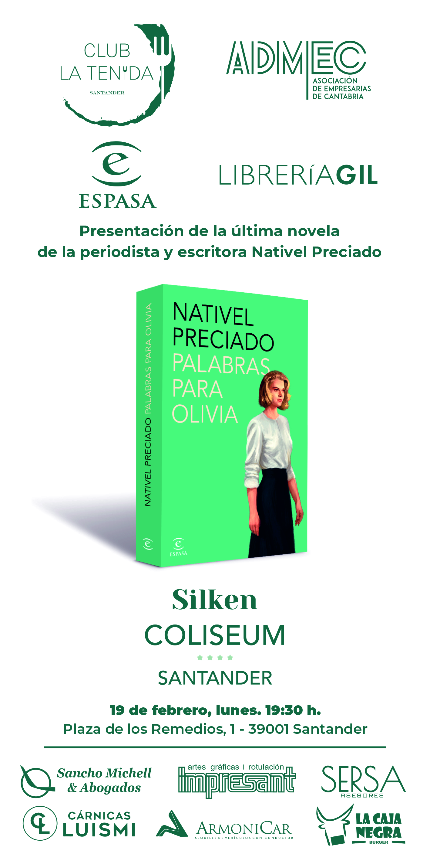 La periodista y escritora Nativel Preciado presentará su última novela “Palabras para Olivia” en un encuentro organizado por el Club La Tenida en el Silken Coliseum.