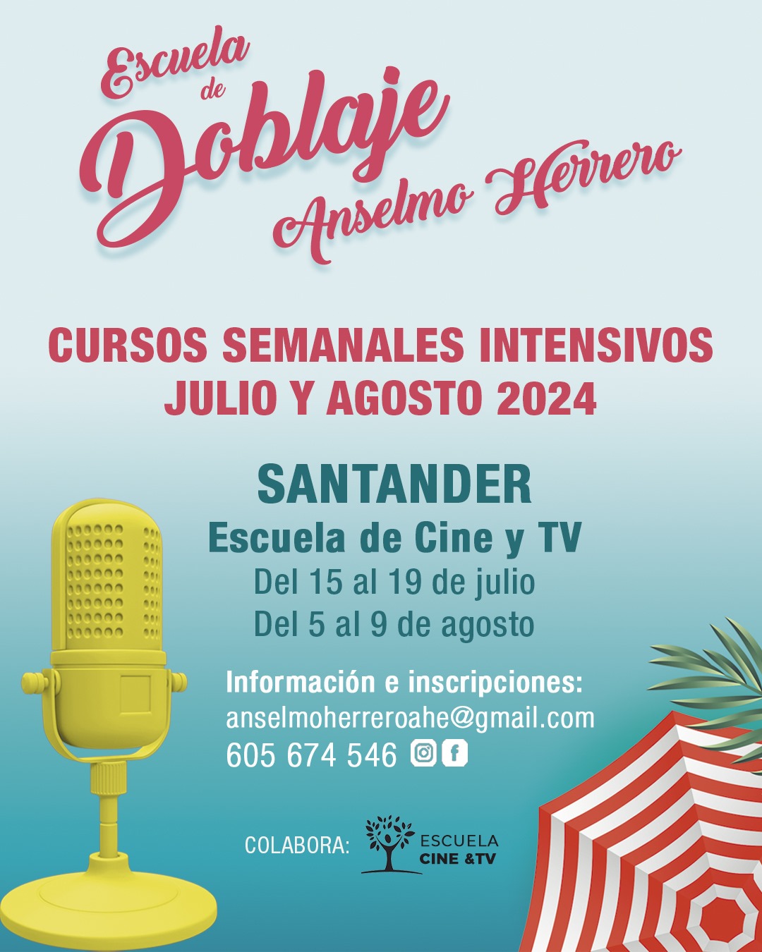 Anselmo Herrero, actor de doblaje, cuentacuentos y profesor, dirigirá varios cursos intensivos este verano en Santander, Torrelavega, Castro Urdiales y Laredo. En julio, la nueva sede de la Escuela de Doblaje Anselmo Herrero en Santander se ubicará en la Escuela de Cine y TV de Javier Cifrián, situada en el Edificio Feygón, en el Sardinero.