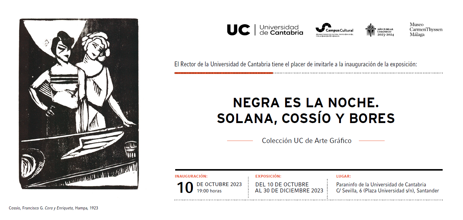 El Paraninfo de la Universidad de Cantabria (UC) abre su temporada expositiva 2023/2024 con la muestra “Negra es la noche", una producción creada a partir de 34 estampas pertenecientes a la Colección Museográfica de la UC, Sección Obra Gráfica, que ya se expuso en Málaga en el verano de 2022 y que visitaron más de veintisiete mil personas.