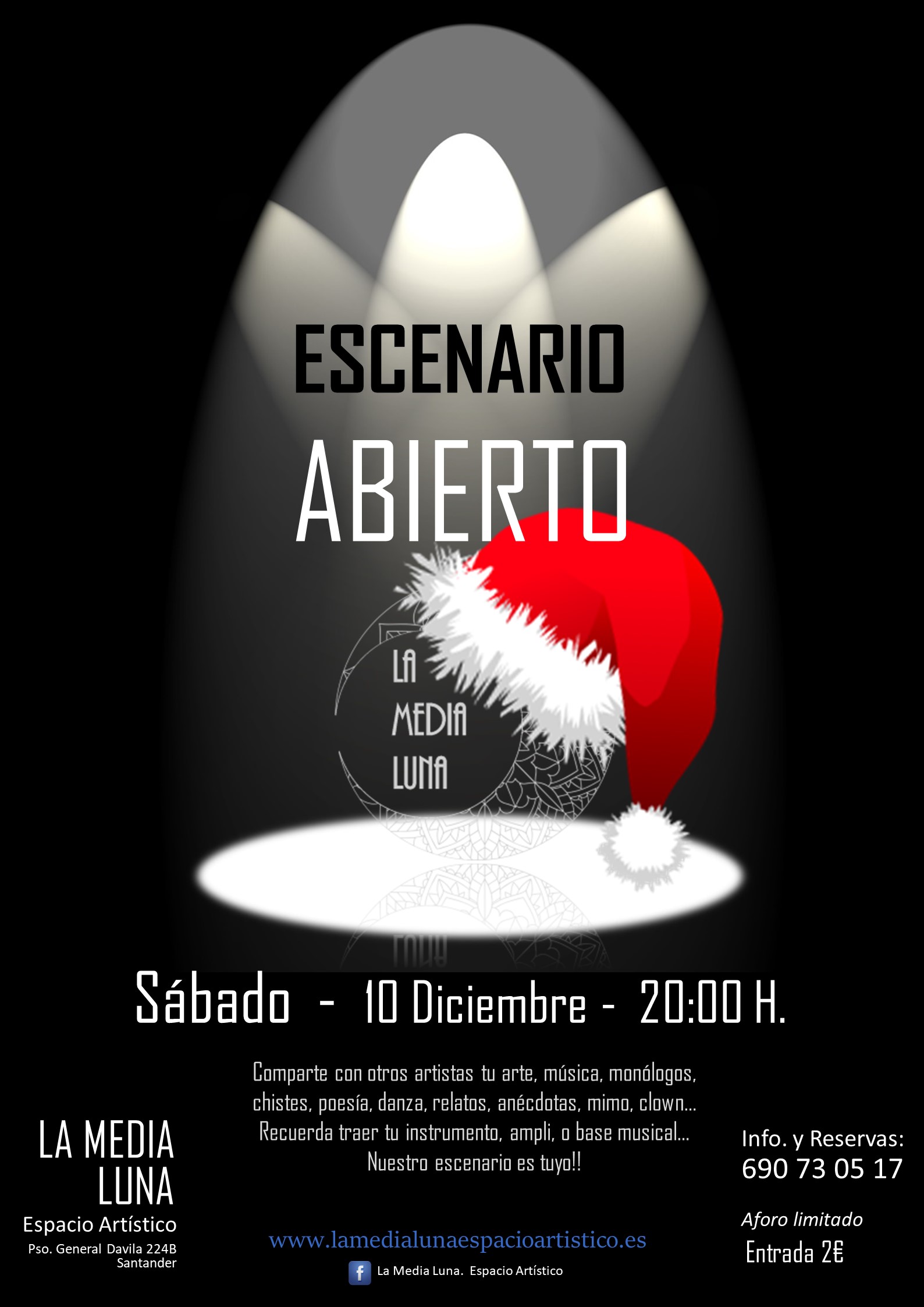 Escenario Abierto para todos aquellos que quieran probar a subirse al escenario y compartir su arte. Todo tipo de propuesta artística tiene cabida en este formato que se desarrollará una vez al mes en el espacio de La Media Luna.