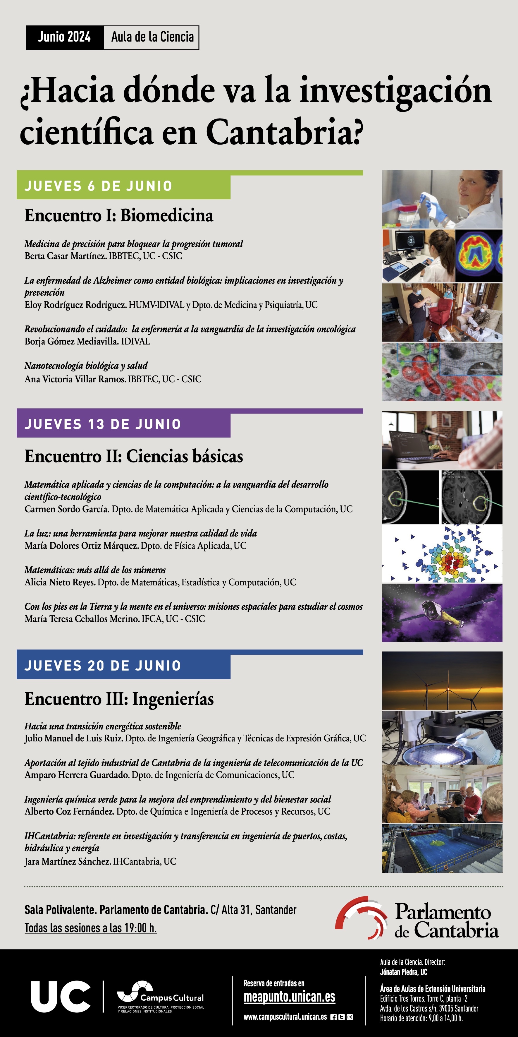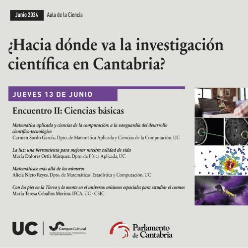 El Aula de la Ciencia de la Universidad de Cantabria organiza durante el mes de junio en el Parlamento de Cantabria varios encuentros en los que diferentes expertos en la materia tratarán de responder a la pregunta: ¿Hacia dónde va la investigación científica en Cantabria? El segundo encuentro abordará las ciencias básicas.