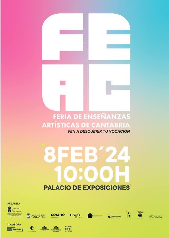 El Palacio de Exposiciones y Congresos de Santander acoge la III Feria de Enseñanzas Artísticas de Cantabria, que se celebrará el jueves 8 de febrero en horario de 10.20 a 20.00 horas. En ella estarán presentes 7 centros de enseñanzas artísticas invitados por las entidades organizadoras que abarcan desde fotografía, diseño de joyas, música y diseño gráfico, entre otras.