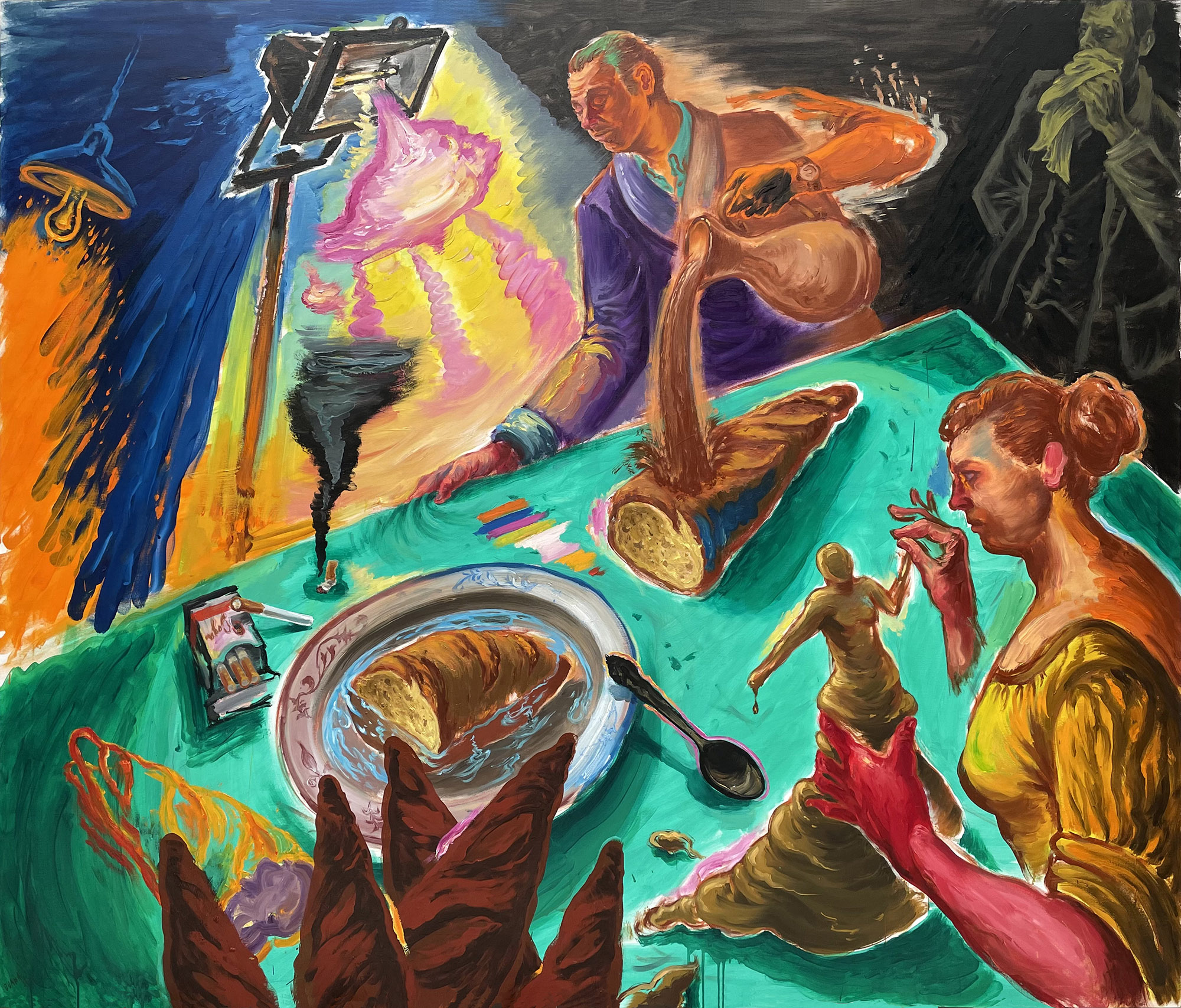 Si atendemos su acervo creativo, vemos que será fundamental el descubrimiento de la pintura alemana, especialmente la figura de Neo Rauch, casi tanto como el carismático Immendorff, con quien comparte su atrevida narratividad, pero de igual manera se aprecia la permanente presencia de la Historia del Arte, -así con mayúsculas- y sobre todo el arte barroco y los maestros que revisa de continuo.