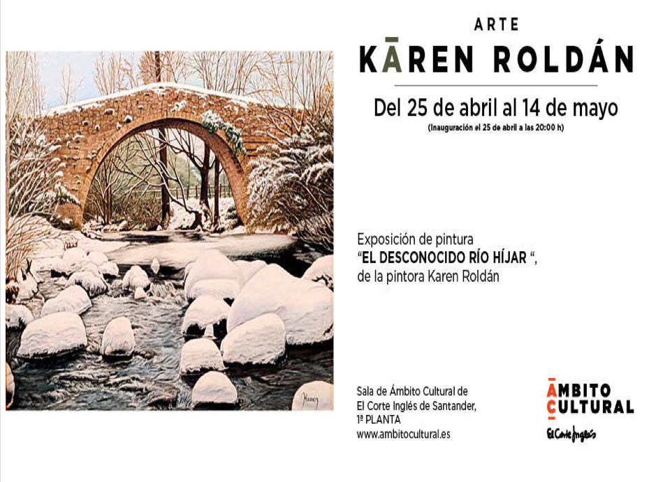 El jueves 25 de abril a las 20:00 horas, la artista Karen Roldán inaugura la exposición de pintura titulada “El desconocido río Hijar”, que podrá visitarse en la sala de Ámbito Cultural de El Corte Inglés hasta el 14 de mayo.