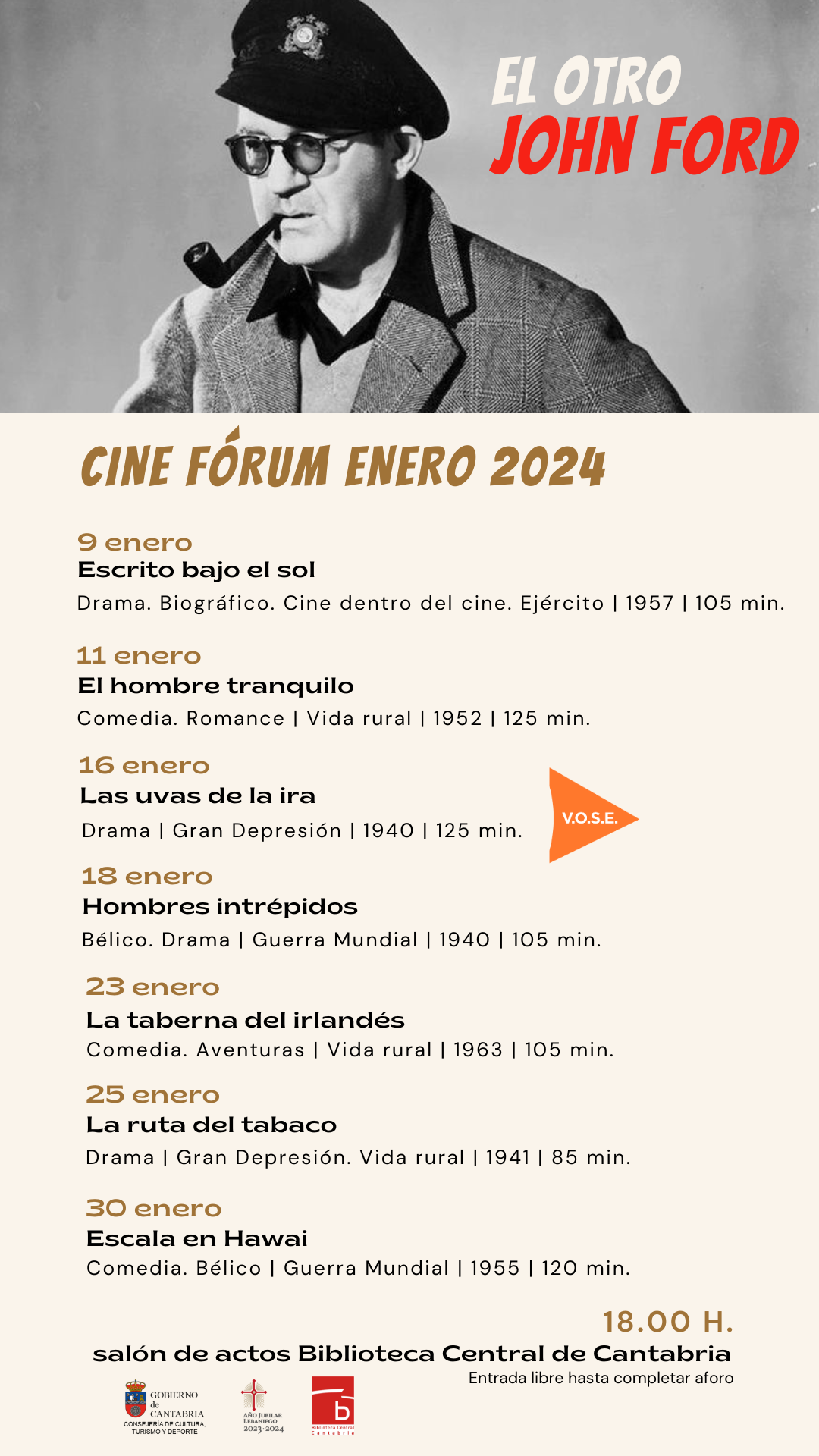 La Biblioteca Central de Cantabria recuerda a John Ford, uno de los mejores directores de todos los tiempos, con un ciclo que permitirá disfrutar de algunas de sus mejores películas fuera del western.