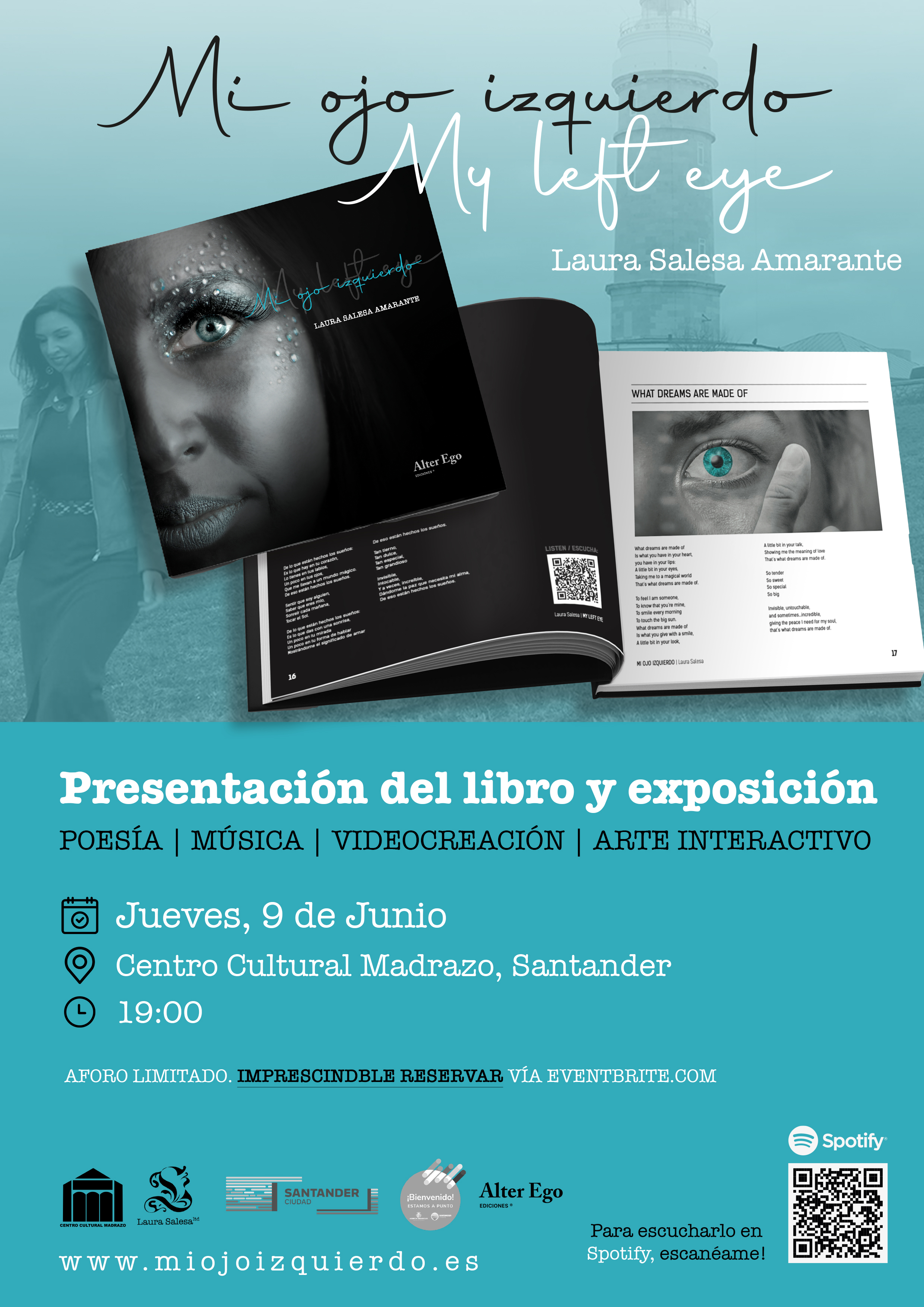 Laura Salesa presenta en el Centro Cultural Dr. Madrazo el proyecto multidisciplinar Mi Ojo Izquierdo, cuya pieza central es el poemario del mismo nombre. Se trata de un proyecto bilingüe (español - inglés) de corte educativo en torno al fomento de la poesía, que contempla las disciplinas creativas de la escritura y el diseño como actividades terapéuticas para el bienestar emocional.