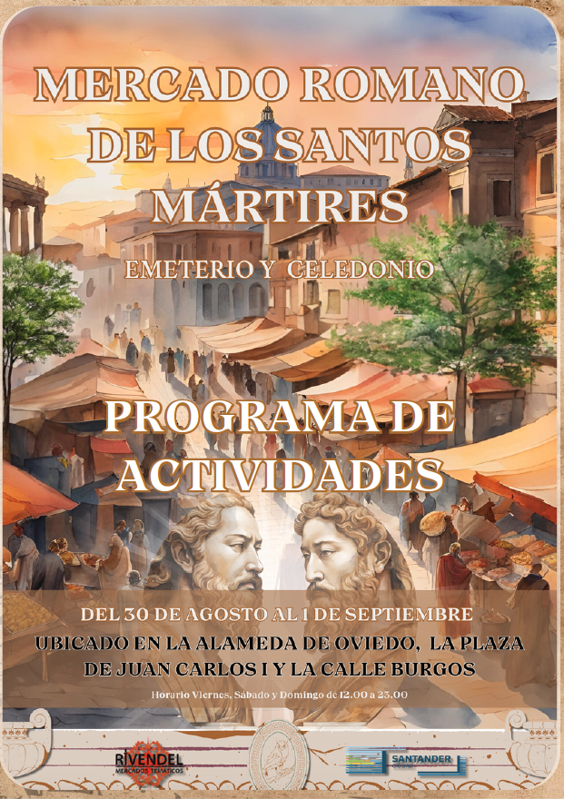 El Mercado Romano de los Santos Mártires se instalará del 30 de agosto al 1 de septiembre en la calle Burgos, Plaza del Rey Juan Carlos I y la Alameda de Oviedo, en horario de 11.00 a 23.00 horas.