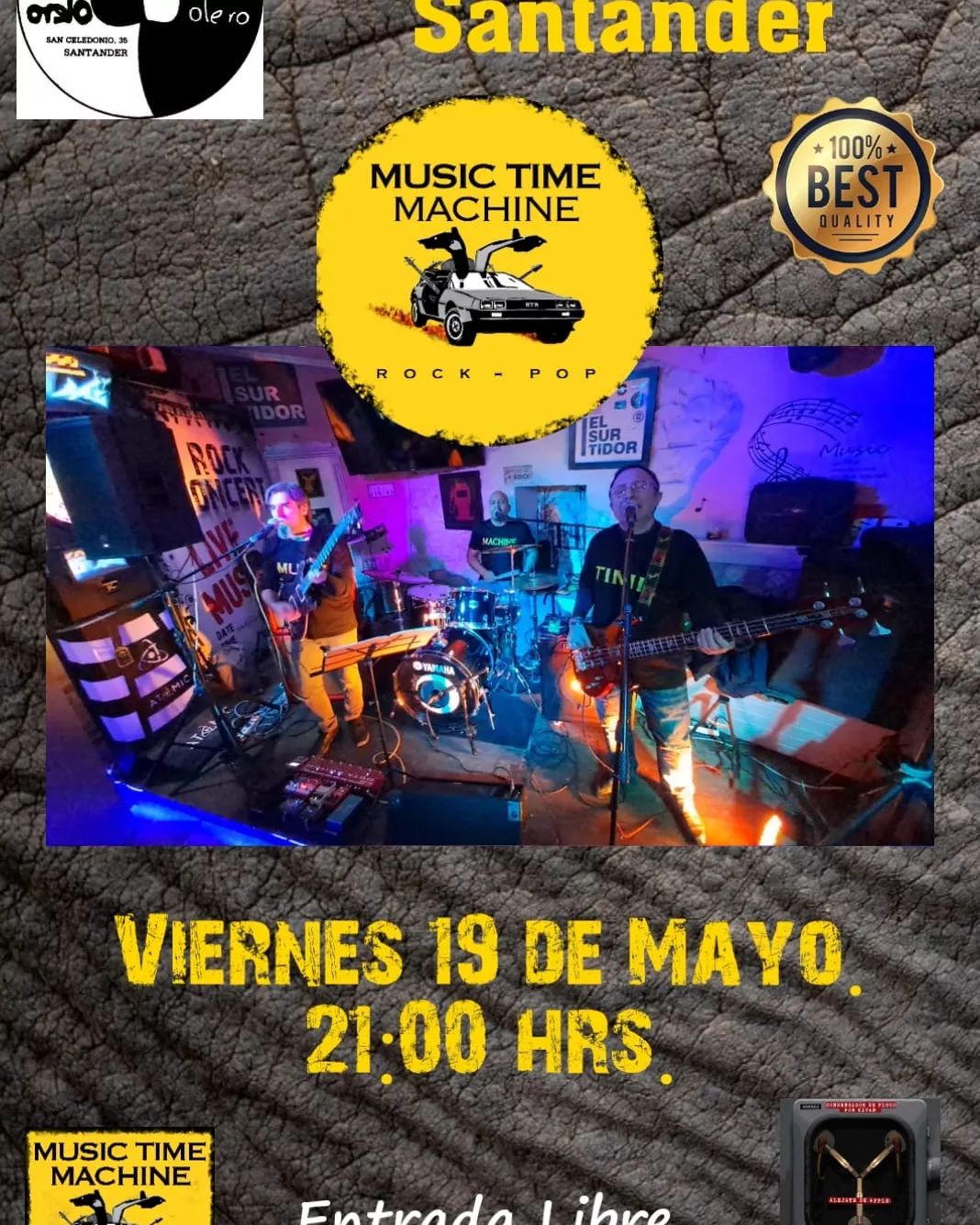 Concierto en el Bolero con la visita de Music Time Machine. Versiones nacionales e internacionales para hacernos cantar y bailar.