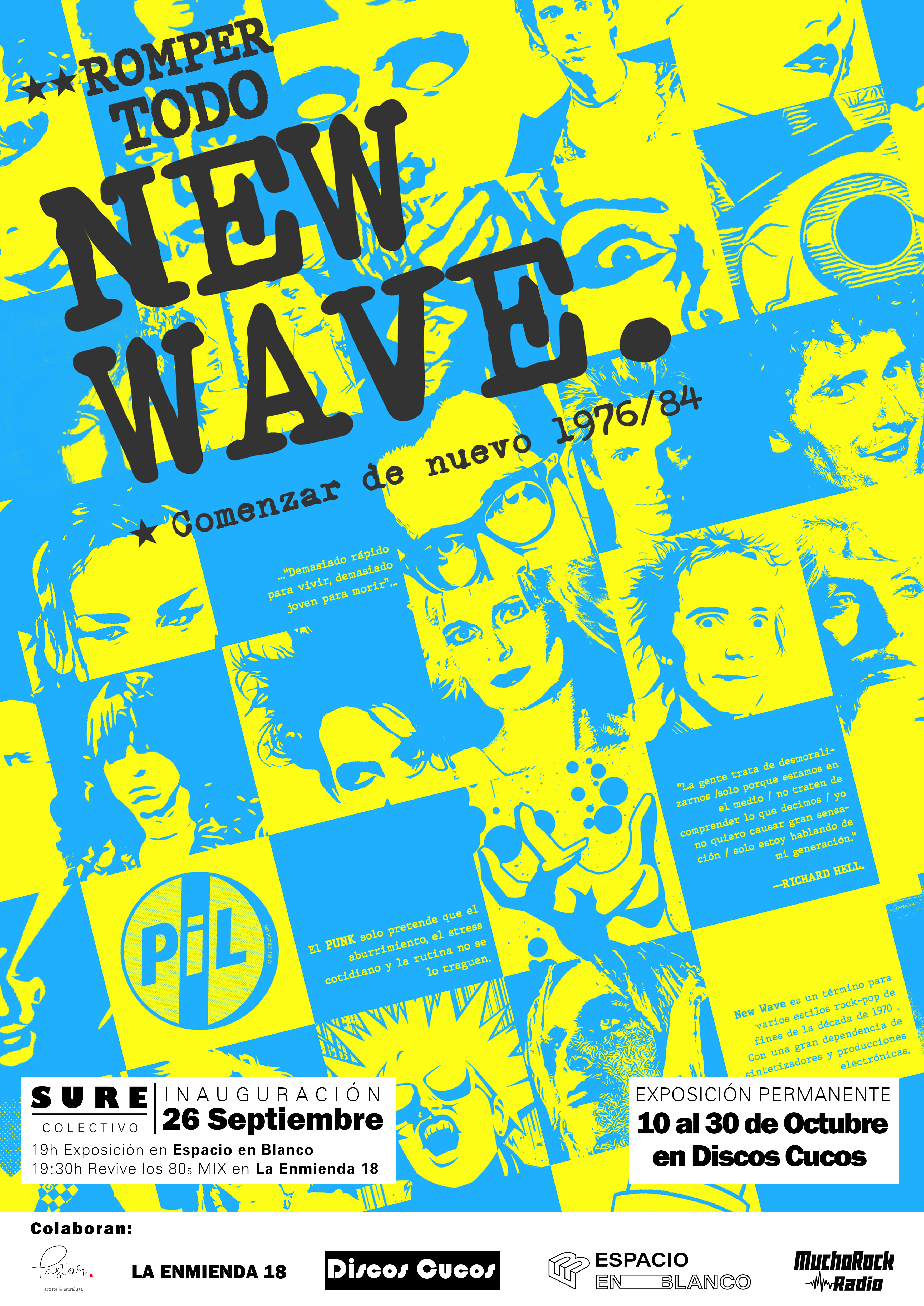 Del 10 al 30 de octubre Sure Santander organiza en Discos Cucos la exposición colectiva “New Wave”, que explora la evolución del género punk y su conversión en New Wave, entre 1976 y 1984, a través del prisma del diseño gráfico, el arte, la música y la narrativa de la época. Rescata carteles gráficos memorables de la revolución musical y cultural de finales de los “70s principios 80s”, incluidos portadas de álbumes y fanzines, junto con ilustraciones y tres murales de ocho artistas locales, inspirados en la contracultura de la época.