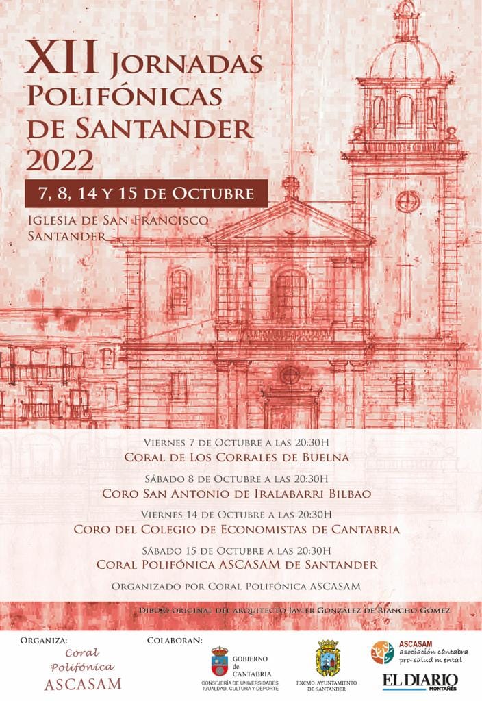 Las XII Jornadas Polifónicas de Santander organizadas por la Coral Polifónica ASCASAM se celebran los días 7, 8, 14 y 15 de octubre en la Iglesia de San Francisco de Santander.