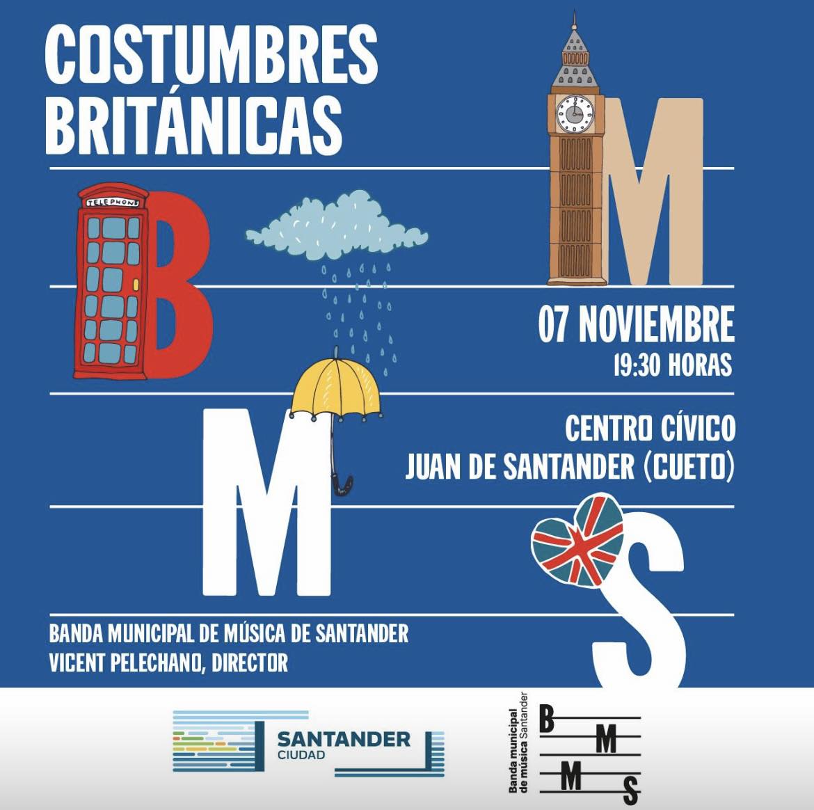 La Banda Municipal de Música de Santander ofrece un concierto el viernes 7 de noviembre a las 19:30h en el Centro Cívico Juan de Santander, titulado “Costumbres británicas".