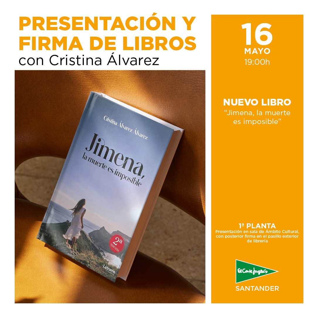 El viernes 16 de mayo de 2025, a las 19:00 horas, Cristina Álvarez presentará en la sala de Ámbito Cultural su novela "Jimena, la muerte es imposible".