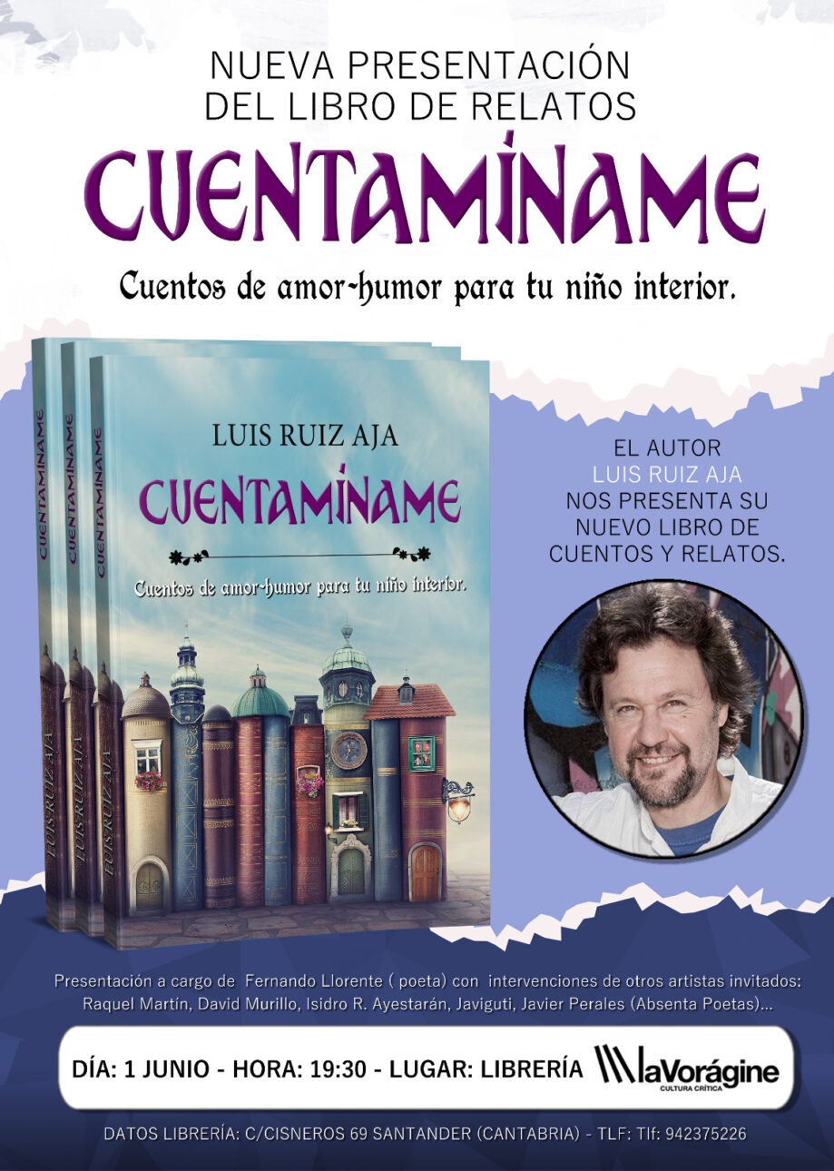 Luis Ruiz Aja vuelve a la Vorágine a presentar su libro de relatos "Cuentamíname: cuentos de amor-humor para tu niño interior”, con un original evento que contará con la participación de varios amigos artistas: Fernando Llorente (presentará el libro), Javi Guti, Raquel Martin, David Murillo, Isidro Ayestarán y Javier Perales.