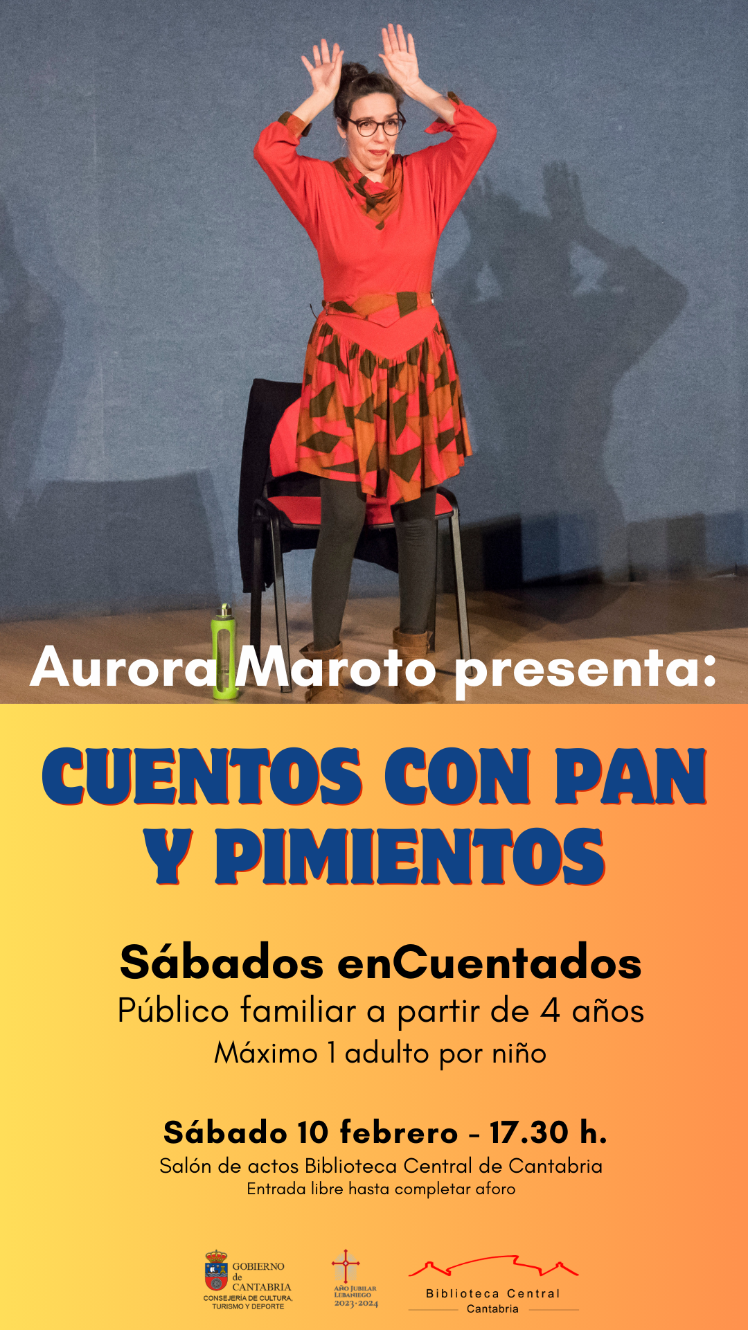 Aurora Maroto nos cuenta “Cuentos con pan y pimientos” dentro del ciclo Sábados EnCuentados de la Biblioteca Central de Cantabria. Actividad dirigida a público familiar a partir de 4 años.