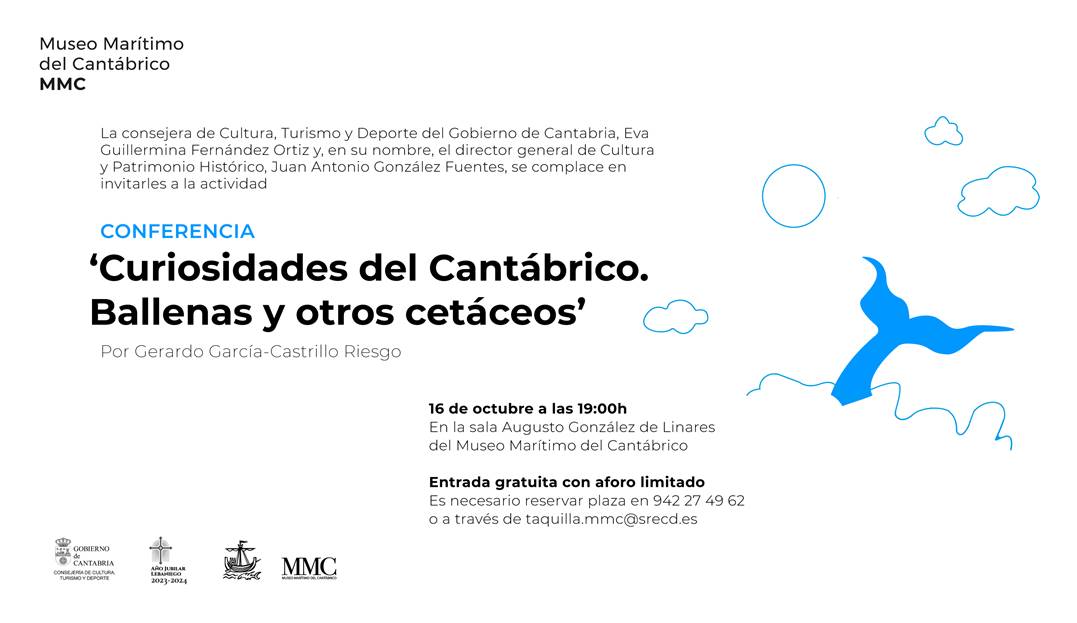 Gerardo García-Castrillo Riesgo, antiguo director del Museo Marítimo del Cantábrico, imparte la conferencia sobre "Curiosidades del Cantábrico. Ballenas y otros cetáceos". Será el 16 de octubre a las 19:00 horas en la sala Augusto González de Linares.