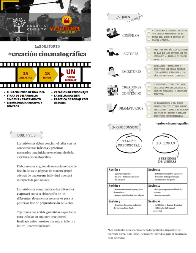 La Escuela de Cine y Tv ofrece un curso de Creación Cinematográfica impartido por Saúl Pérez los días 19, 20, 21, 26, 27 y 28 julio.