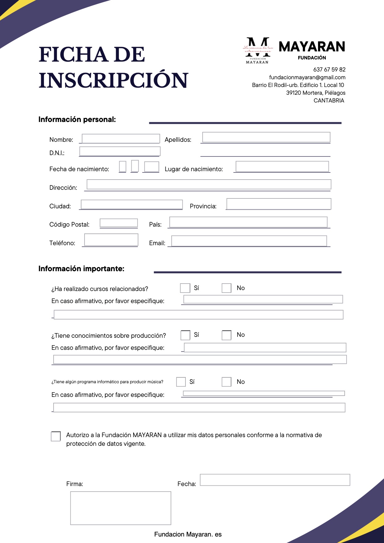 ** Los interesados en asistir al curso deberán rellenar la FICHA DE INSCRIPCIÓN y enviarla al correo electrónico fundacionmayaran@gmail.com hasta el día 4 de noviembre.
