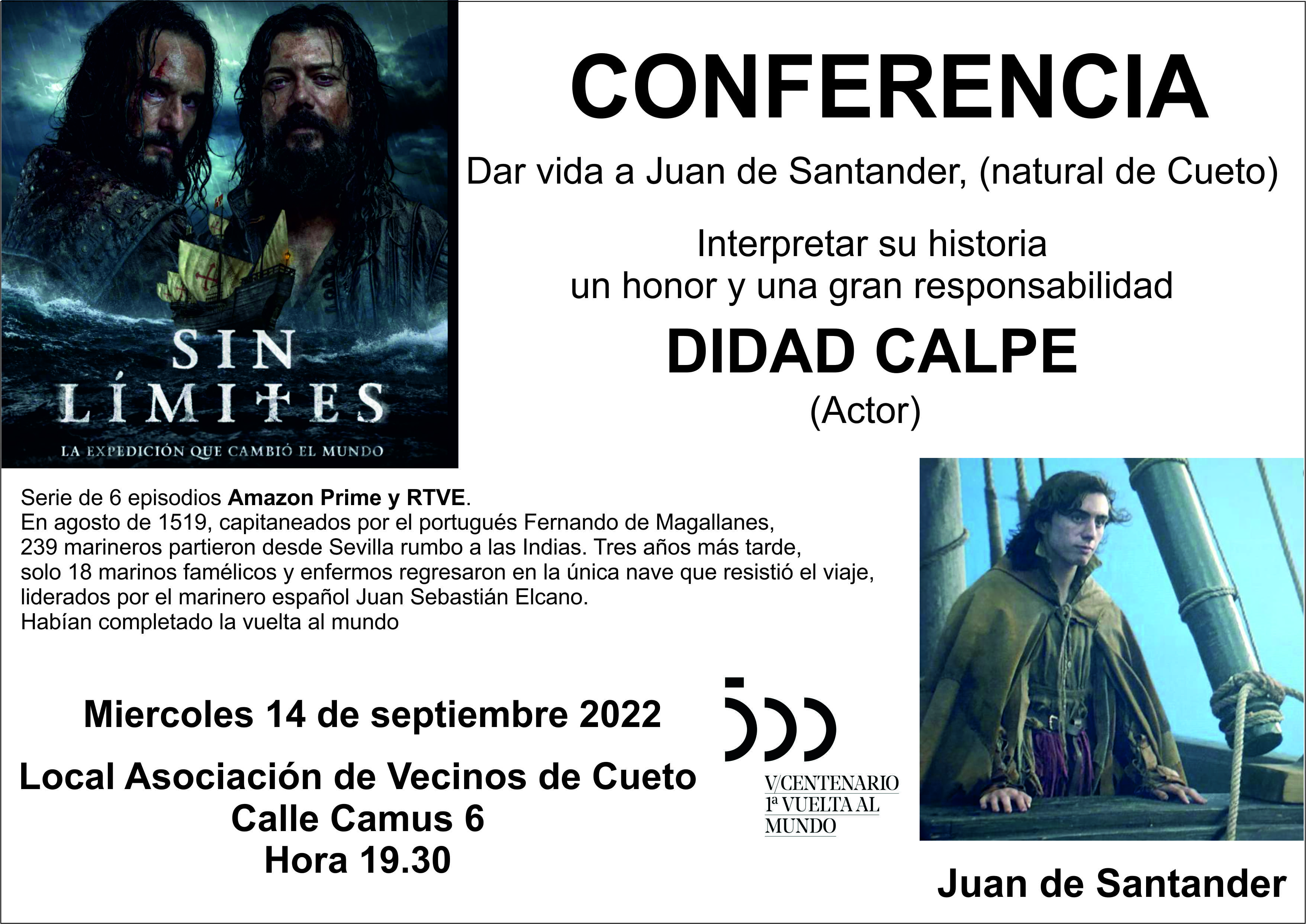 El actor Didad Calpe imparte la conferencia “Dar vida a Juan de Santander (natural de Cueto). Interpretar su historia, un honor y una gran responsabilidad” en el local de la Asociación de Vecinos de Cueto, el miércoles 14 de septiembre a las 19:30 h.