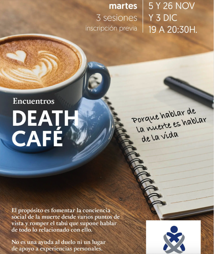 Death Cafe es un grupo organizado de discusión sobre la muerte sin un guión cerrado ni objetivos concretos. El propósito es fomentar la conciencia social de la muerte desde varios puntos de vista para valorar la vida y romper el tabú que supone hablar de todo lo relacionado con la muerte.
