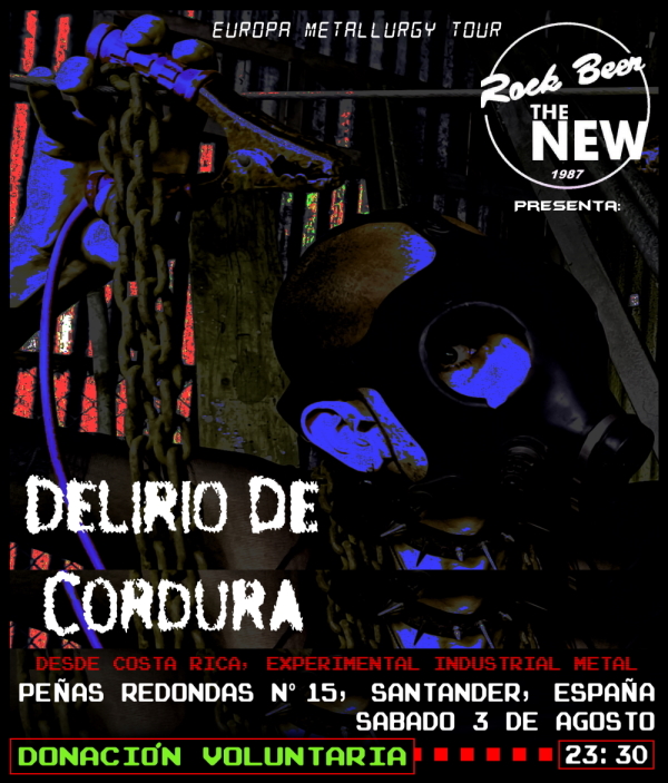 La banda costarriqueña “Delirio de Cordura” ofrece un concierto el 3 de agosto a las 23:30 horas en la sala Rock Beer The New. La formación, de gira por Europa, recala en Santander para compartir con el público su sonido más experimental, industrial y puramente metal.