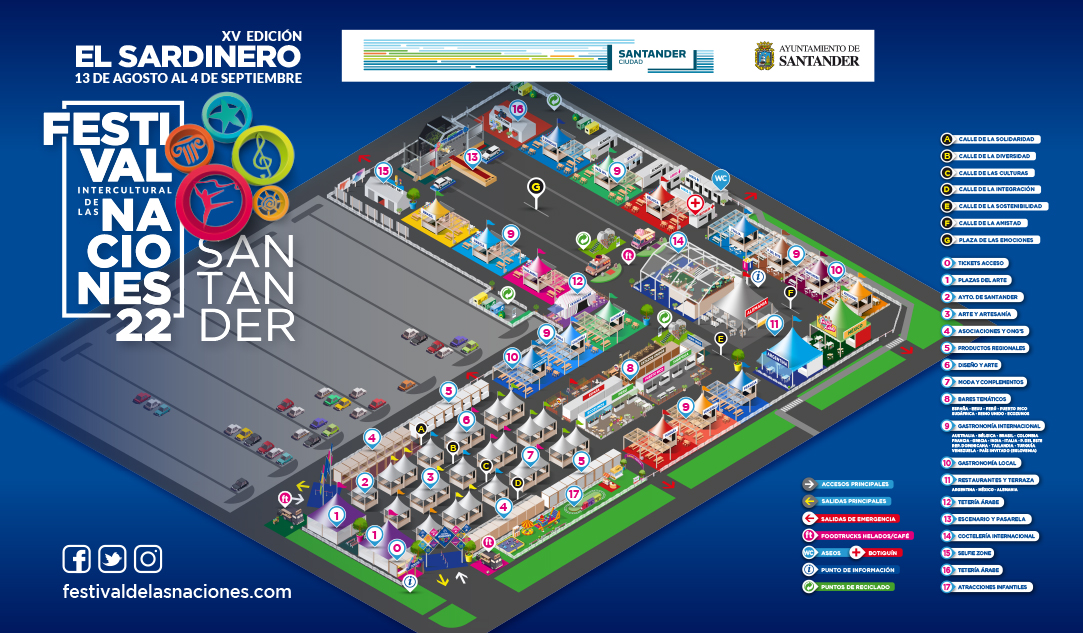 Regresa a Santander el XV Festival Intercultural, un evento consolidado en la programación del verano santanderino que regresa más solidario y con más actividad que nunca, tras el parón de los dos últimos años debido a la pandemia. El martes 30 de agosto se celebra el Día de Santander, con actividades infantiles, actuaciones de folclore regional y el concierto de Navajita Plateá.