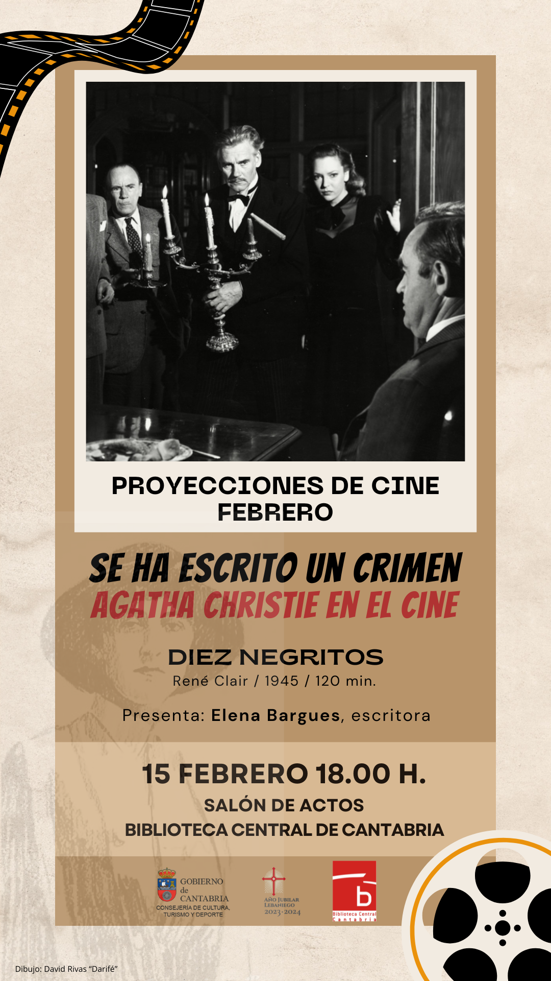 La Biblioteca Central de Cantabria prosigue su programación cinematográfica en febrero con un ciclo dedicado a la escritora británica especializada en el género policial, Agatha Christie (1890-1976), en el que se ofrecerá, en formato cine-fórum, una pequeña pero representativa muestra de las adaptaciones fílmicas de su obra literaria.