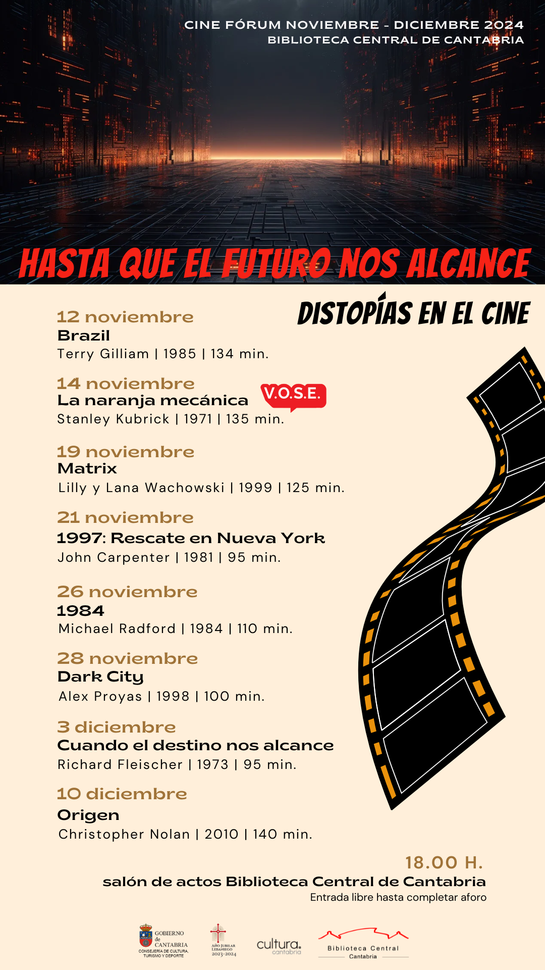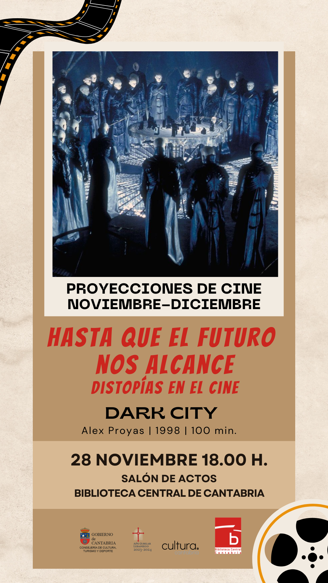 La Biblioteca Central de Cantabria programa este ciclo sobre distopías en el cine con motivo de los 75 años de la publicación de la novela “1984”, de George Orwell, una de las obras más relevantes de la literatura moderna y que, a día de hoy, sigue teniendo una gran vigencia en la coyuntura política, social y cultural en la que nos encontramos.28 N Dark City (Alex Proyas, 1998