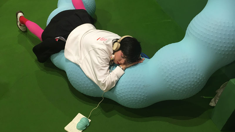 Este Domingos en familia es un concierto muy especial. Tendrá lugar en la sala de exposiciones, donde los asistentes disfrutarán de la música en medio de las fantásticas esculturas hinchables de Eva Fàbregas. La obra de Fàbregas (Barcelona, 1988), de gran tamaño, los rodeará, inundando todo el espacio de color.