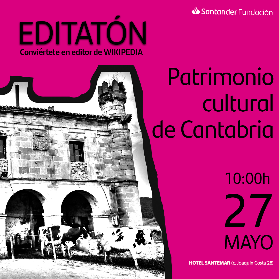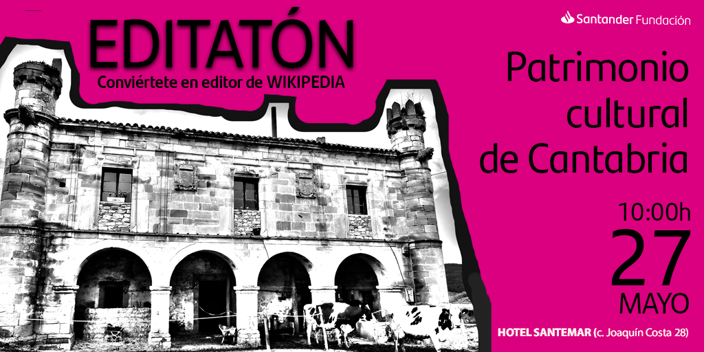 Este editatón estará destinado a recoger en Wikipedia el patrimonio de Cantabria que está en la lista roja, es decir, que está en riesgo grave de destrucción, desaparición o pérdida irreversible. Con su inclusión en Wikipedia se trata de darle visibilidad y dejar constancia de su existencia en la enciclopedia online más consultada del mundo.