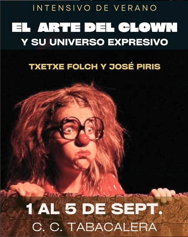 José Piris y Txetxe Folch imparten el curso intensivo "El arte del clown y su universo expresivo", del 1 al 5 de septiembre, en horario de 10:00 a 14:30h, en el Centro Cívico de Tabacalera.