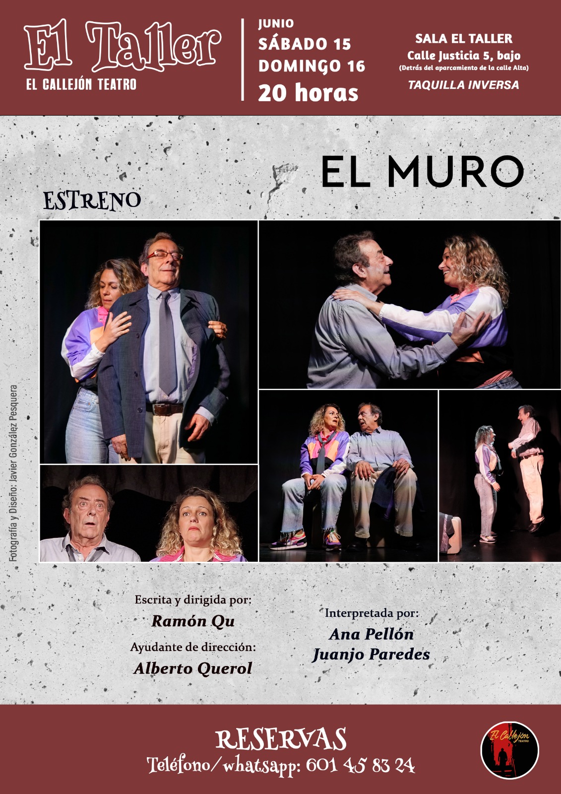 El Callejón Teatro estrena una nueva versión de “El Muro” el sábado 15 y el domingo 16 de junio, ambos días a las 20 horas, en El Taller, en la Calle Justicia 5, Bajo, de Santander. Las reservas de entradas han de realizarse a través del whatsapp del 601458324.