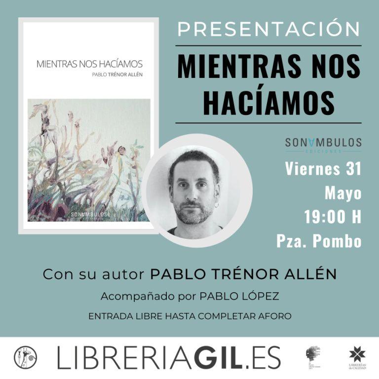 El viernes 31 de mayo, a las 19:00 h. la Librería Gil de la Plaza de Pombo acoge la presentación de “Mientras nos hacíamos”, de Pablo Trenor Allén (Sonámbulos Ediciones). El autor estará acompañado por el fotógrafo Pablo López.