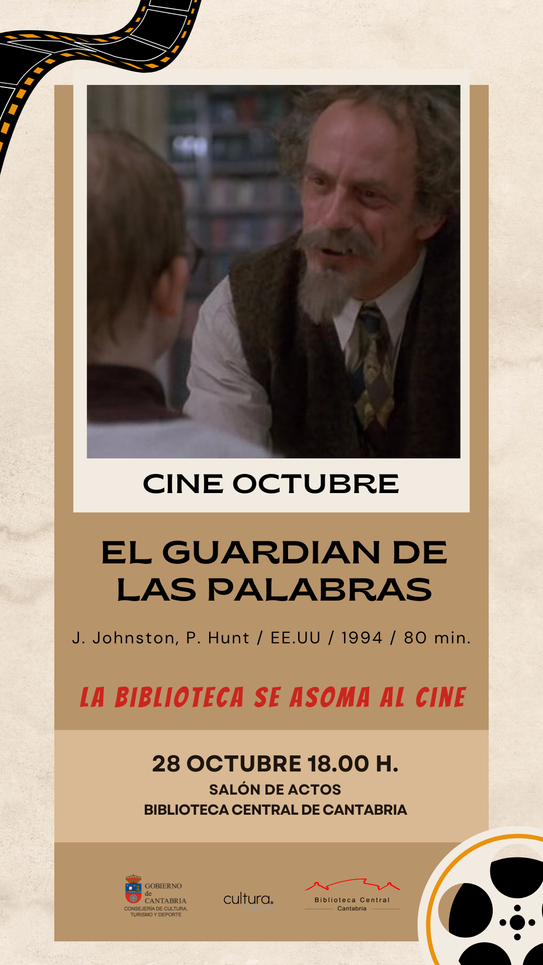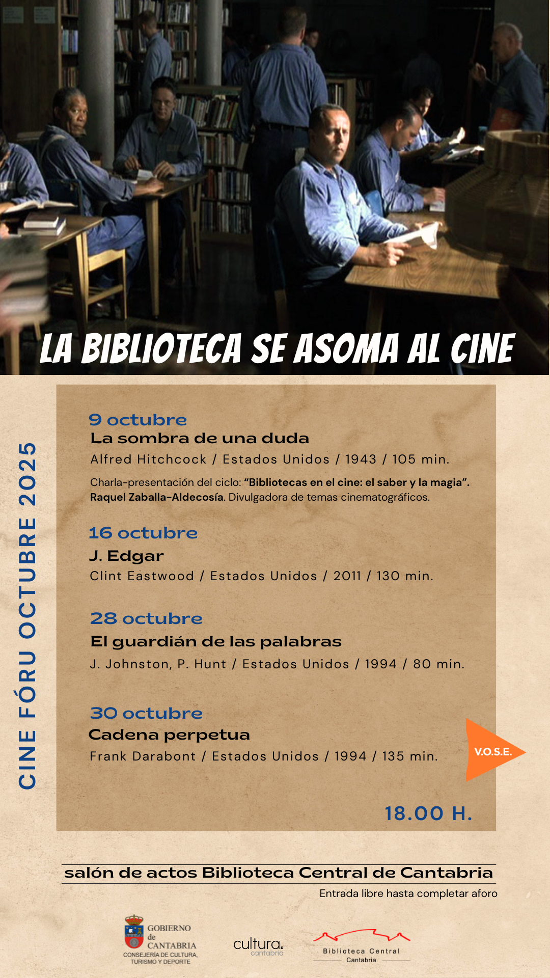 A lo largo de la historia del cine numerosos directores han rodado películas en las que las bibliotecas han aparecido en pantalla. La Biblioteca Central de Cantabria programa en octubre con motivo de la celebración del Día de la Biblioteca, un ciclo de cuatro proyecciones en las que las bibliotecas se “asoman” al séptimo arte.