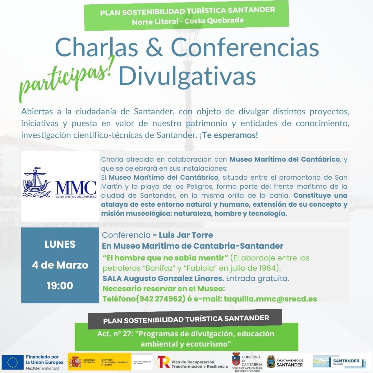El ciclo continúa el lunes 4 de marzo a las 19:00 h en el Museo Marítimo del Cantábrico, cuando Luis Jar Torre impartirá la conferencia "El hombre que no sabía mentir: el abordaje entre petroleros Bonifaz y Fabiola en 1964".
