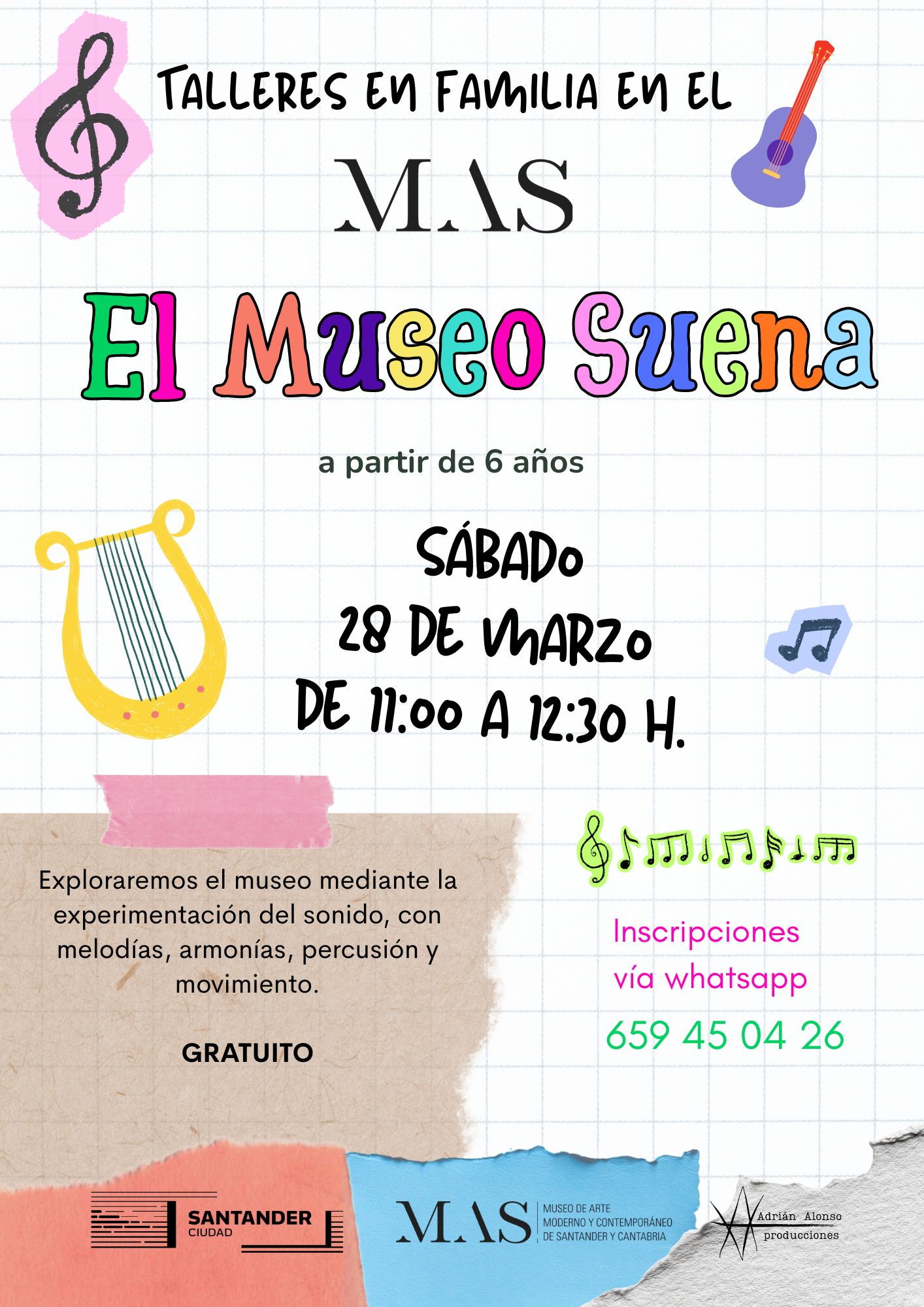 El Museo de Arte Moderno y Contemporáneo de Santander y Cantabria (MAS) acogerá el sábado, 28 de marzo, una nueva actividad de su programación didáctica dirigida al público familiar. Bajo el título ‘El museo suena’, será una propuesta creativa pensada para niños y niñas a partir de 6 años.