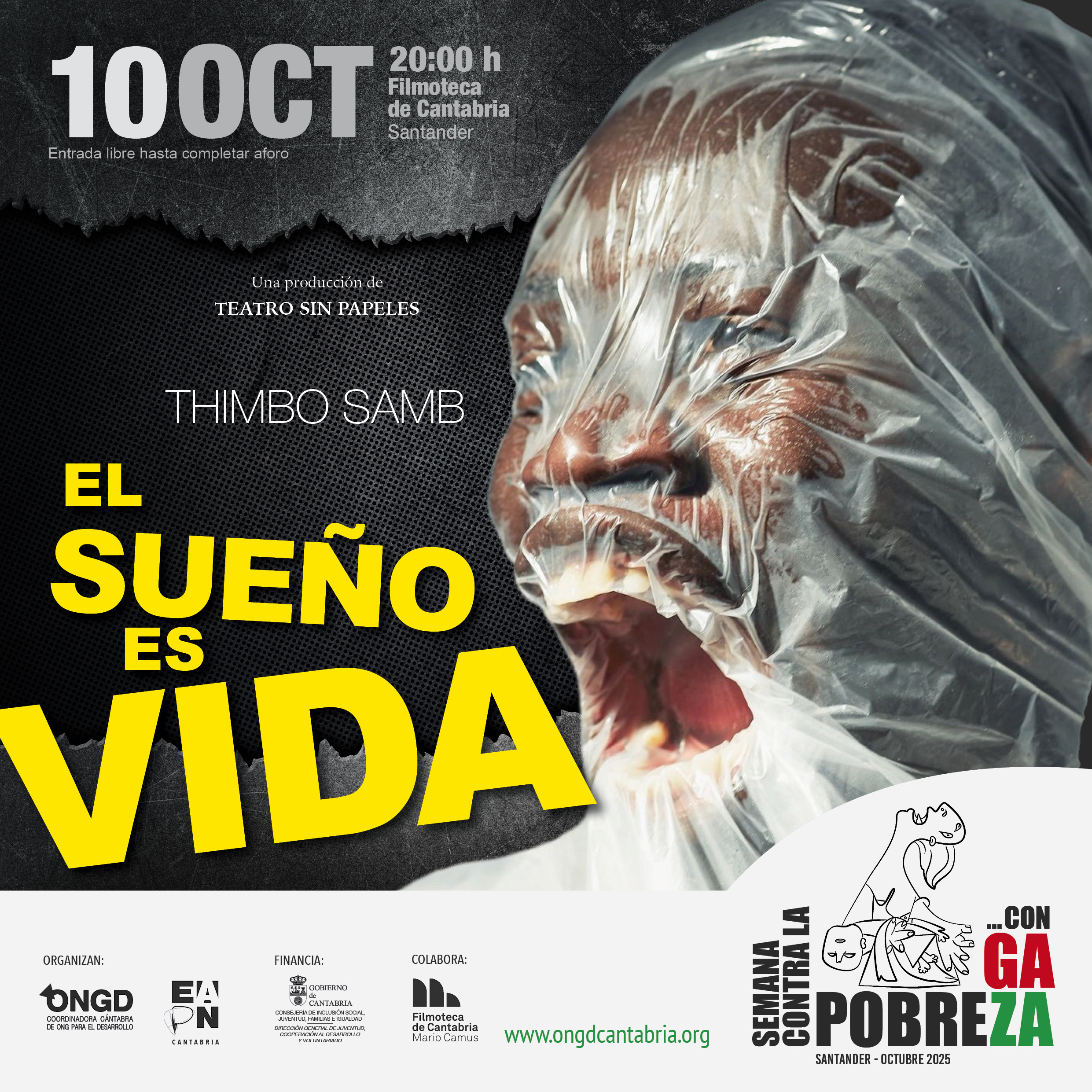 Comienza la Semana contra la Pobreza 2025 con una propuesta cultural muy especial: la representación teatral El sueño es vida, interpretada por Thimbo Samb, actor y activista senegalés, que tendrá lugar el viernes 10 de octubre a las 20:00 h en la Filmoteca de Cantabria.