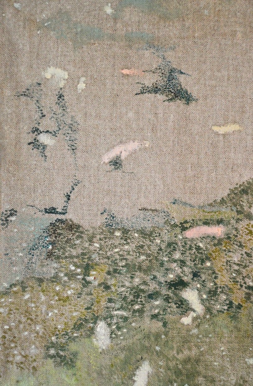 Imagen: Javier Arce. Detalle. “Sobre lo cercano (Charca)”, 2021. Óleo sobre lino, roble, 44 x 30 cm.