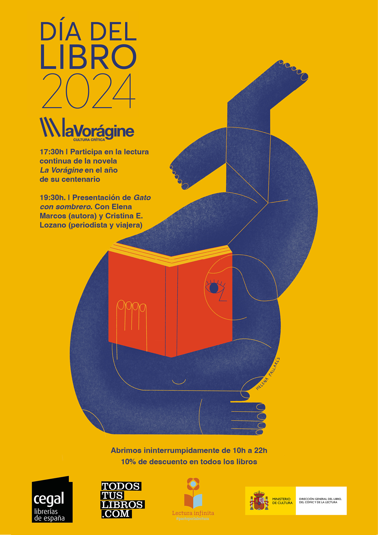 La librería Vorágine celebra el Día del Libro 2024 con varias actividades. A partir de las 17:30h las personas interesadas pueden participar en la lectura continua de la novela La Vorágine en el año de su centenario