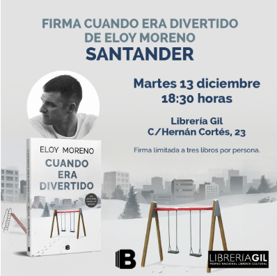 El martes 13 de diciembre, a las 18:30 h. Eloy Moreno estará en Librería Gil para firmar ejemplares de su último título “Cuando era divertido” (Ediciones B).