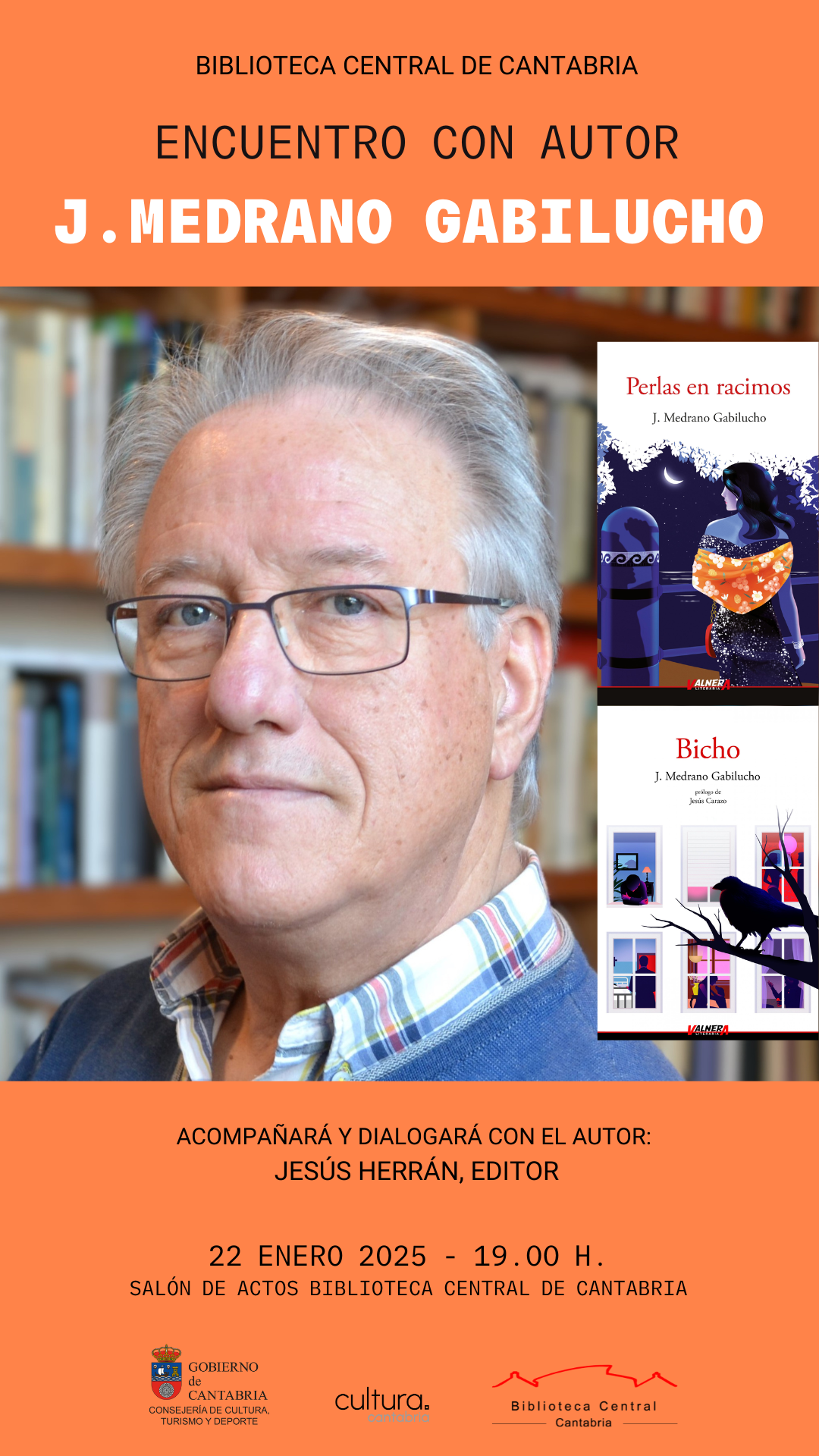 El 22 de enero la Biblioteca Central de Cantabria recibirá al escritor Jesús Medrano Gabilucho. En este encuentro literario el autor compartirá sus experiencias como escritor, hablará de su trayectoria desvelando detalles de su proceso creativo, de los temas que inspiran sus obras de poesía y narrativa, etc.