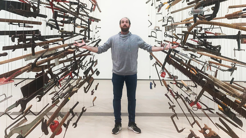 Eduardo Sáenz de Cabezón, presentador del programa de RTVE Órbita Laika, matemático, profesor de Lenguajes y Sistemas Informáticos de la Universidad de La Rioja y reconocido especialista en monólogos científicos, sostiene que existe un vínculo constante entre el arte y las matemáticas. Tras su visita a la exposición de Damián Ortega lo vio aún más claro y quiere compartirlo con quien le acompañe.
