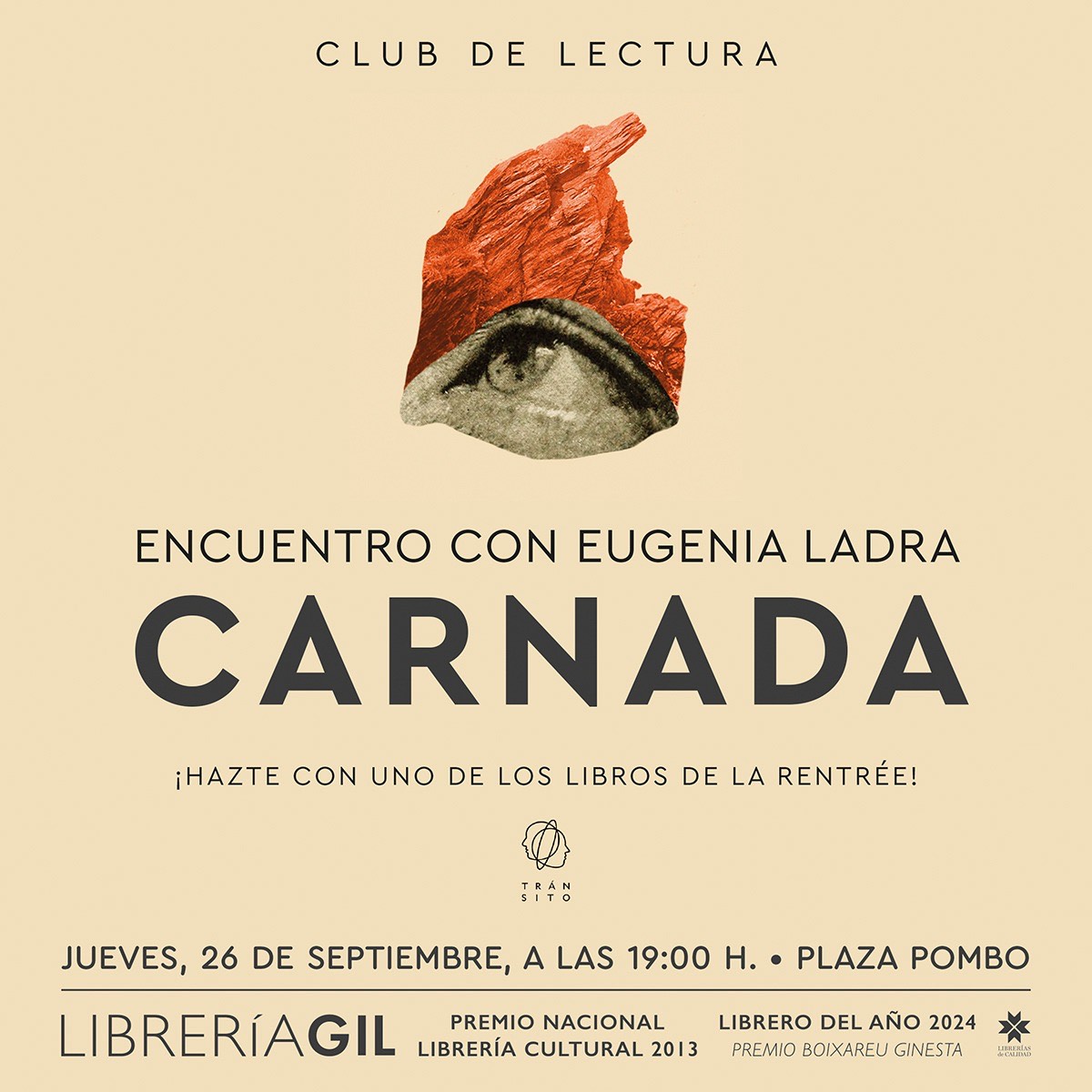 El jueves 26 de septiembre, a las 19:00 h. Eugenia Ladra conversará en torno a su obra “Carnada” ( Editorial Tránsito). Imprescindible reservar plaza en agenda@libreriagil.es / 942 214 961 o en la librería.
