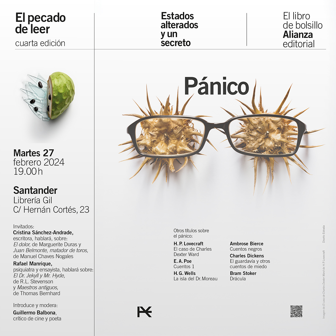 El ciclo de encuentros “El pecado de leer”, organizado por la editorial Alianza, llega a su cuarta edición con la propuesta de explorar a través de la lectura muchas de las circunstancias, situaciones o sustancias que hacen que nuestra mente se desordene. Los estados alterados, realidades alternativas, percepciones desmesuradas —en ocasiones entendidas como estados de locura—, nos muestran una realidad otra en la que nosotros somos otros también.
