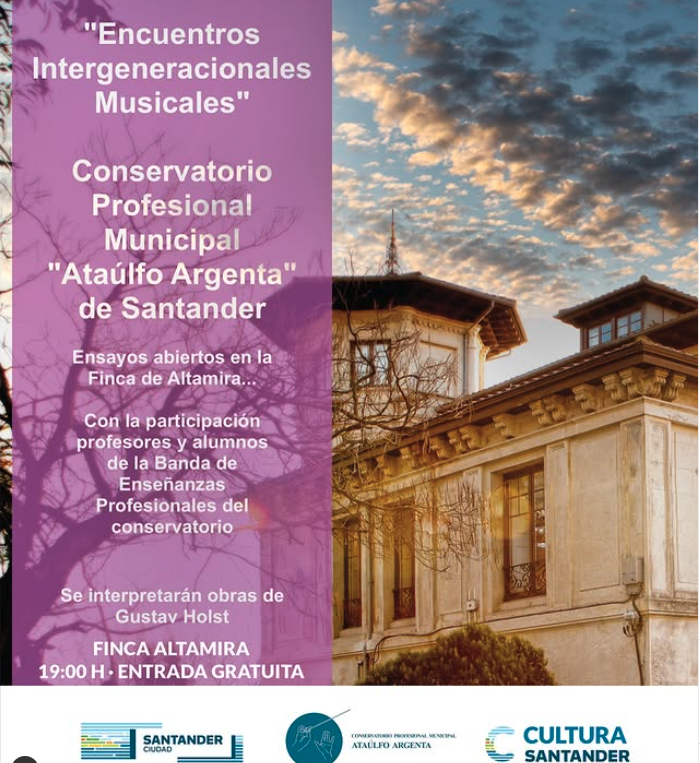 Profesores y alumnos del conservatorio Ataúlfo Argenta ofrecerán tres encuentros musicales intergeneracionales los días 30 de abril, 7 y 13 de mayo, a las 19.30 horas, dirigidos a las personas mayores usuarias del centro municipal de la Finca Altamira.