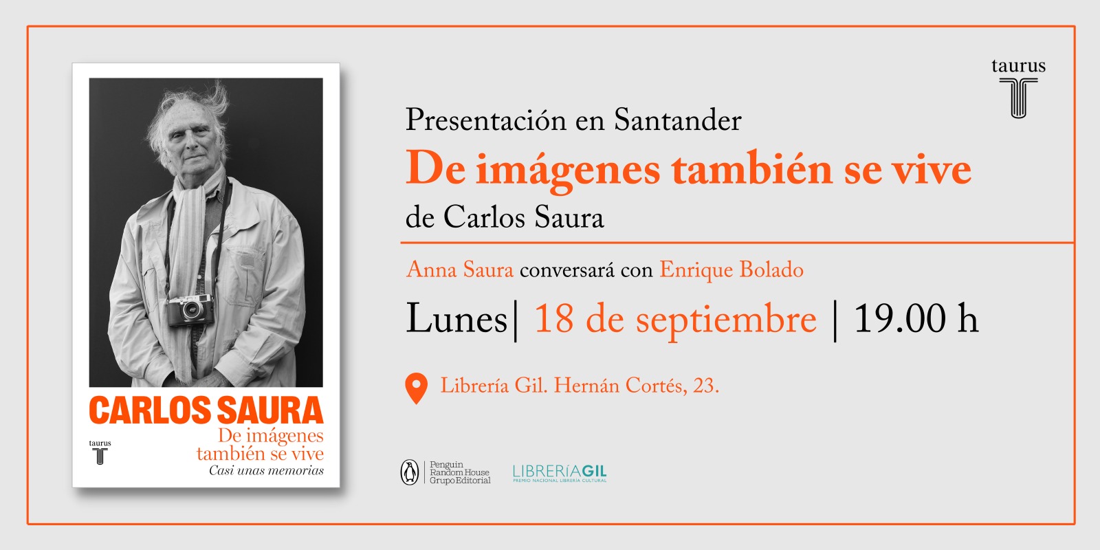 El lunes18 de septiembre, a las 19:00 h. Gil acoge la presentación de "De imágenes también se vive. Casi unas memorias", de Carlos Saura. El acto, presentado por Enrique Bolado, se enmarca en el VII Festival de Cine de Santander. Editorial Taurus.