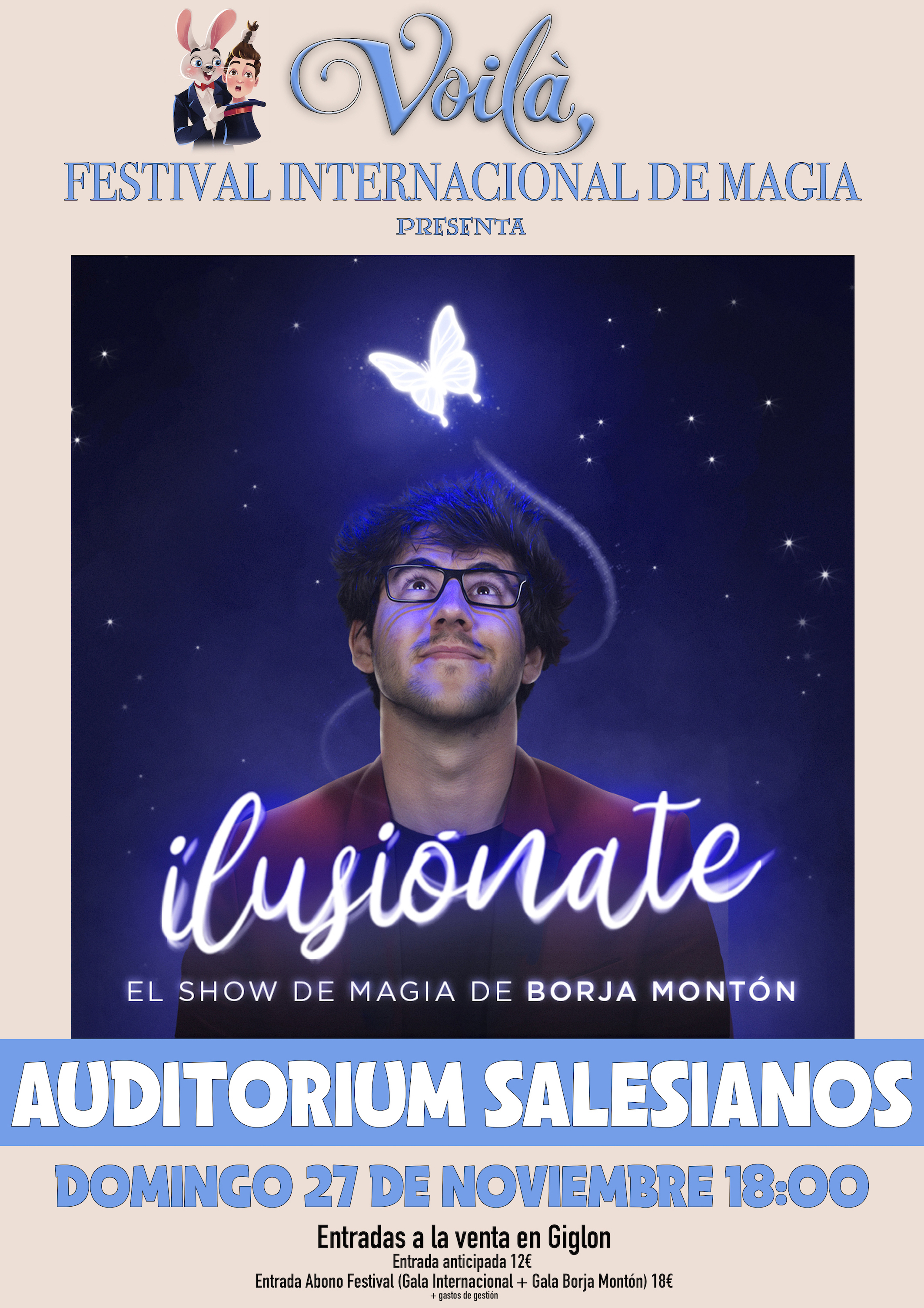El día 27 será el turno del espectáculo ‘Ilusiónate’, de Borja Montón, mago y presentador del programa de magia ‘Wooala!’ en la plataforma Mediaset. Montón también es creador del canal de youtube ‘Domina la Magia’, la comunidad digital de magia más grande en español, que cuenta con cerca de 1 millón de seguidores en redes sociales.