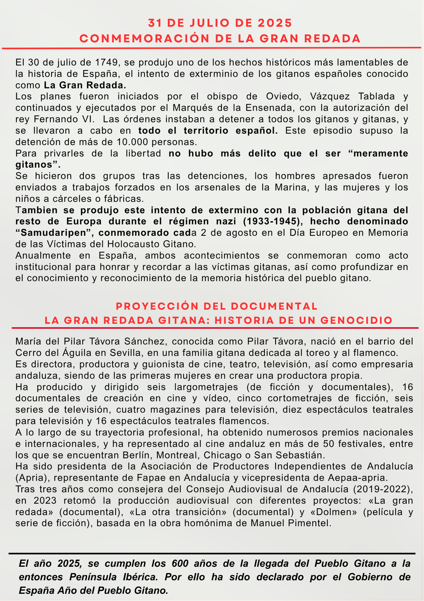 La asociación Contigo Creando organiza el estreno en Cantabria de la película "Gran Redada Gitana. Historia de un genocidio", con la presencia de su directora, Pilar Távora.