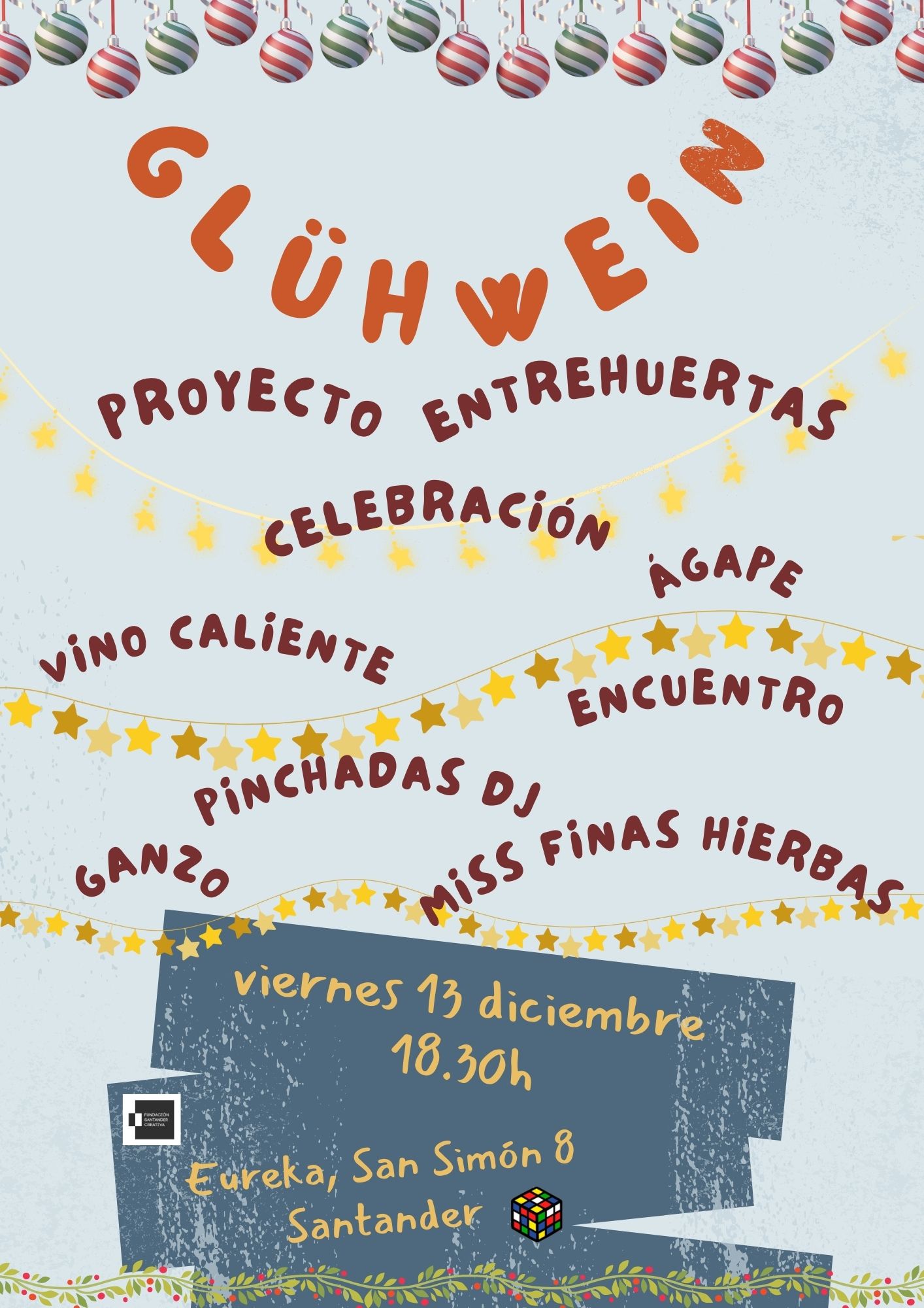 El viernes 13 de diciembre de 19:00h a 22:30h. Eureka celebra el cierre del proyecto Entrehuertas con una "Fiesta Glühwein", música, vino caliente, ágape y celebración.